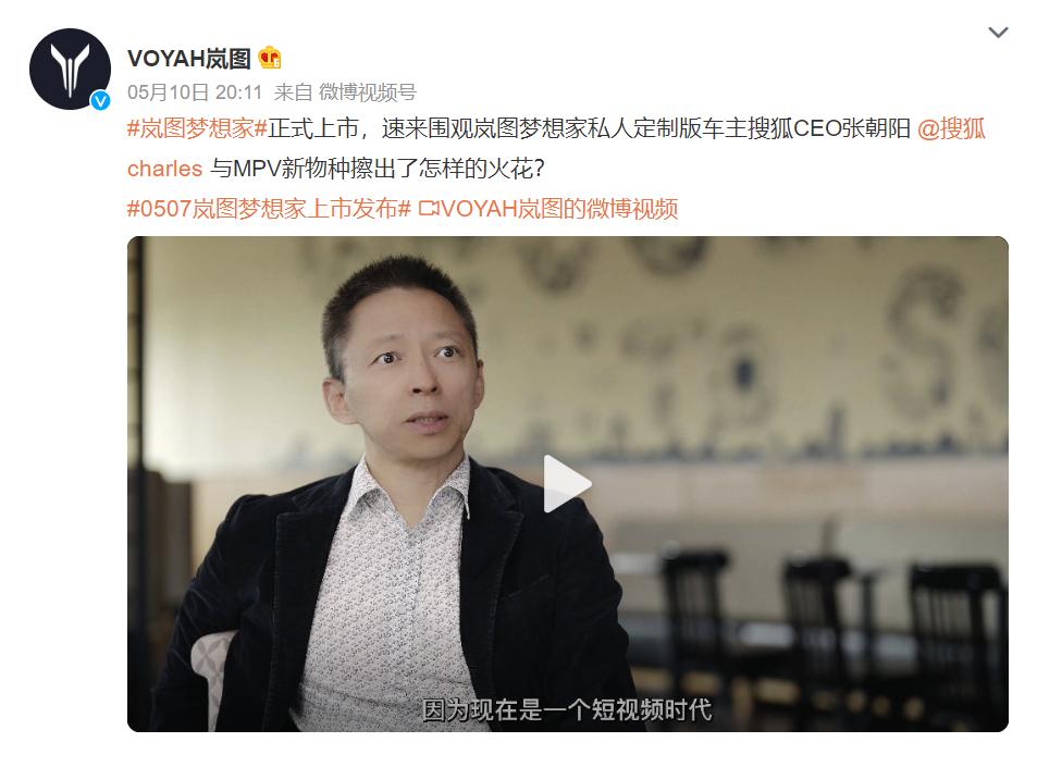 值得一提的是,就在岚图梦想家正式上市的第二天,岚图汽车微博发布消息称,搜狐CEO张朝阳已经成功下定了梦想家私人定制版。
