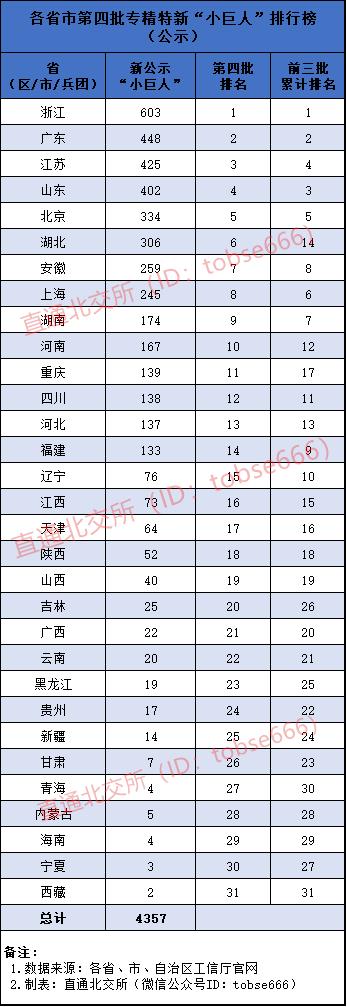 第四批国家级专精特新“小巨人”正公示,浙江广东江苏继续居前
