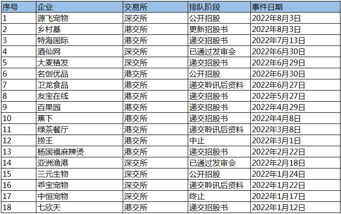 2022年IPO排队消费类企业(部分)数据来源:IT桔子
