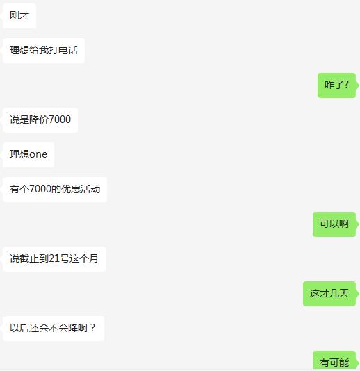 即便是面对如此优惠,这位车主仍然没有下手。在他看来,理想ONE还会再降,“再多降点我才考虑。”