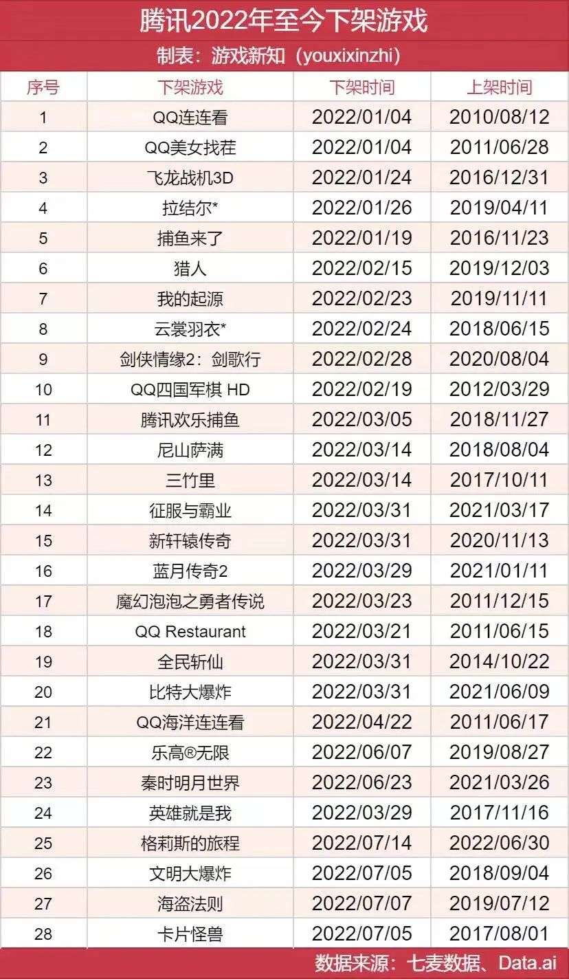 除了这些相对知名的产品之外,腾讯在今年还有很多产品的退场是悄无声息的,比如在游戏领域,今年上半年就有全民斩仙、QQ连连看、捕鱼来了等20多款游戏下架停服,但由于知名度的原因,这些产品的落幕并未引起更多关注。