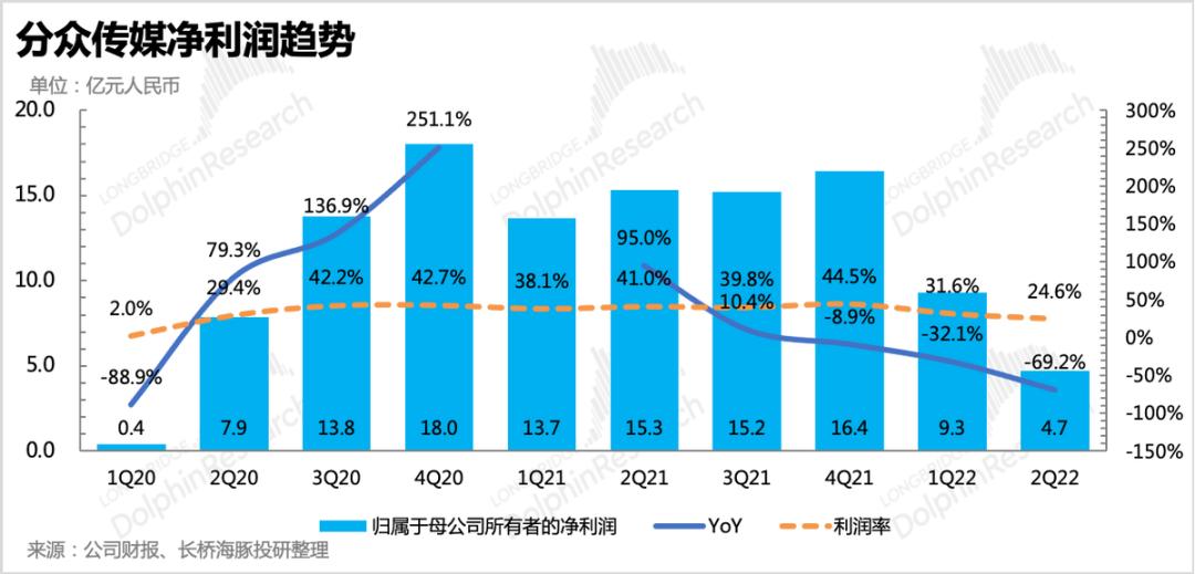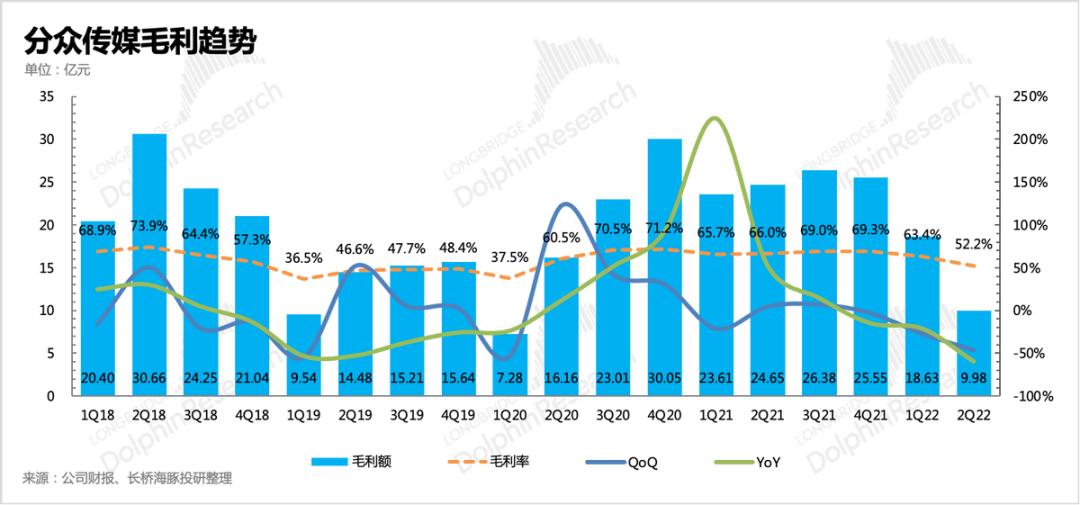 (3)费用上,分众占比最大的销售费用,二季度加速下滑,裁员猛烈。其他管理、研发费用则小幅增加或持平,并且由于整体绝对值不高,因此它们的变动对最终利润影响也不大。