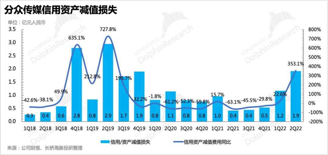 除此之外,二季度信用减值费用陡增明显,同比扩张速度超过300%。这也是值得警惕的一个迹象,随着经济压力的持续,可能会有更多的中小广告主经营不善,广告合同难以回款成为最终的坏账。