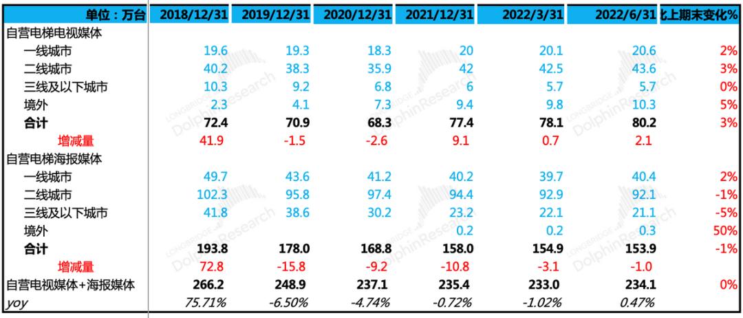 在上一轮疫情期间(2020年),分众和同行的点位扩张之战是暂时停歇的,但2021年开始,跟随着经济恢复,分众重新开始扩张,但进度缓慢的背后则是分众一边关闭变现效率不高的点位,一边扩张新点位的策略。也就是说,分众在偃旗息鼓、整体优化的“表层”下,是悄悄扩张的“里层”。而二季度,这次扩张的力度开始显露。