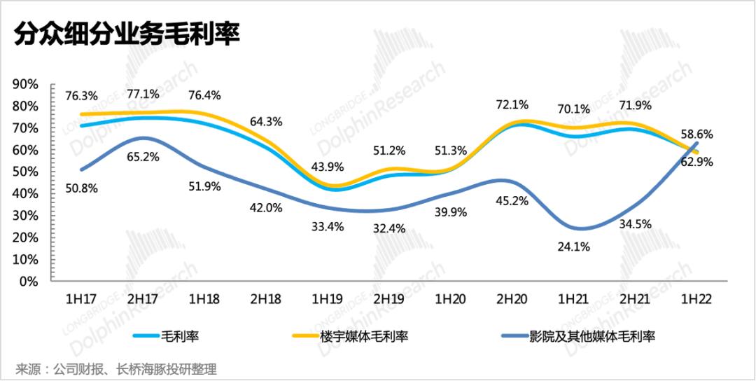 毛利率分项来看,主要的拖累在于楼宇媒体,影院及其他媒体虽然经营端情况更糟糕,但银幕点位收缩明显且部分有租金减免,利润侵蚀反而不那么严重。