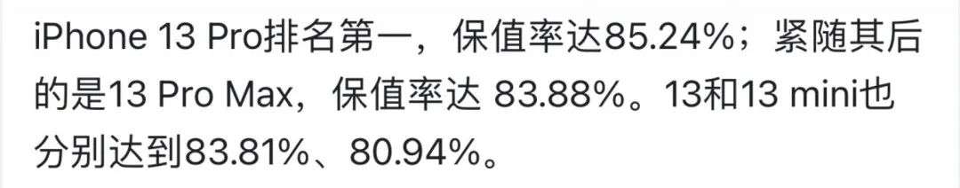 要知道,据野鸡机构统计,人iPhone 13系列的保值率最高可是超过了85%❗️