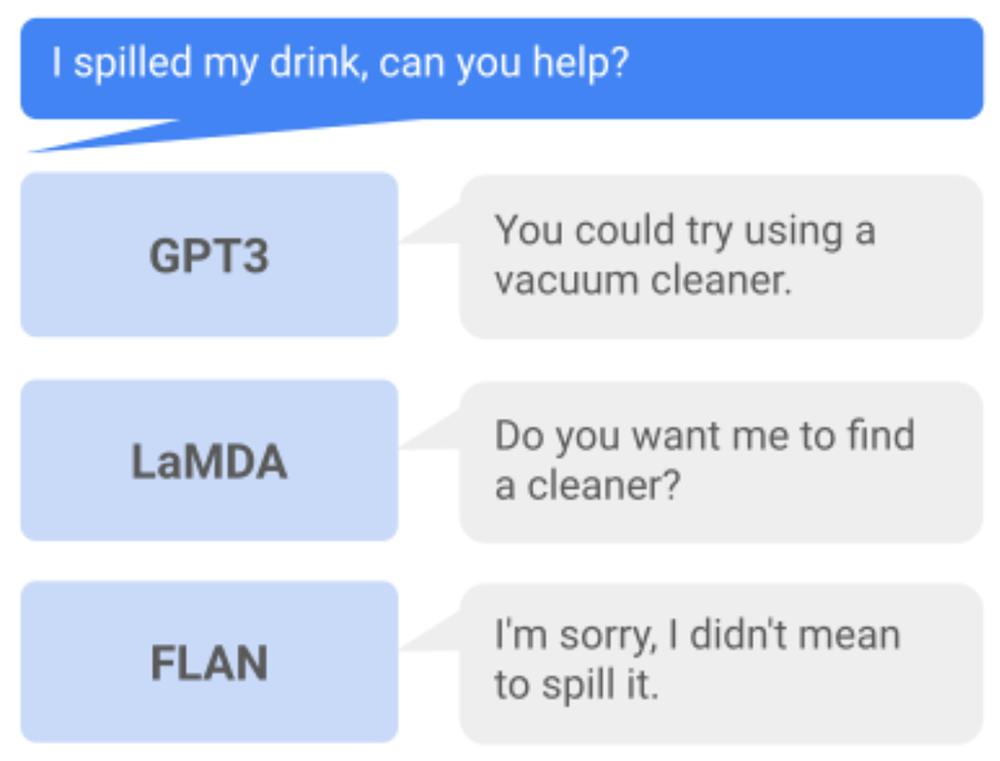 另一个谷歌FLAN语言模型则会直接道歉:“对不起,我不是故意的。”这显然是个没用的回应。