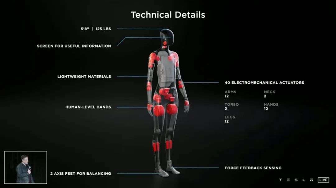 ▲特斯拉“擎天柱”的部分参数