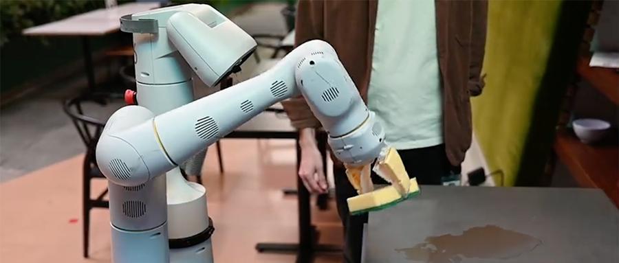 比如,当你问机器人:“我把饮料洒了,你能帮忙吗?”谷歌机器人可以迅速筛出适配指令的合适行动,然后从厨房拿块清洁海绵来。