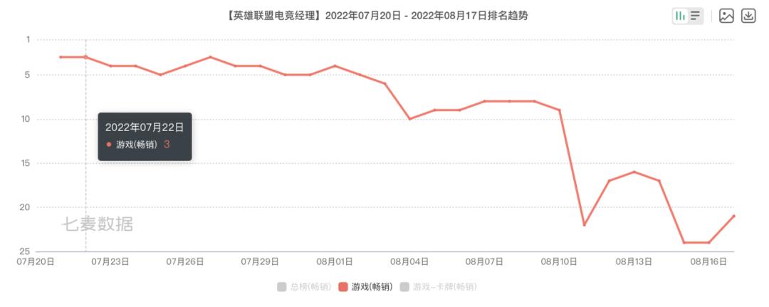 其中鲜少有爆款出现,仅一款围绕“英雄联盟”电竞赛事展开的模拟经营手游《英雄联盟电竞经理》成绩相对突出。该游于7月21日上线后iOS最高畅销排名第3,近期在畅销25名左右徘徊。受限于游戏上线时间点,该游市场收入未能在财报中有所体现。