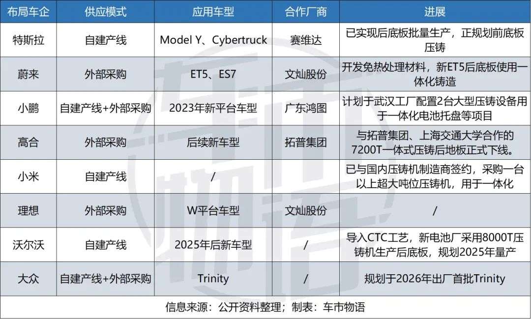 此外,高合汽车、小米汽车、理想汽车,以及大众等海外车企也在竞相布局一体化压铸。