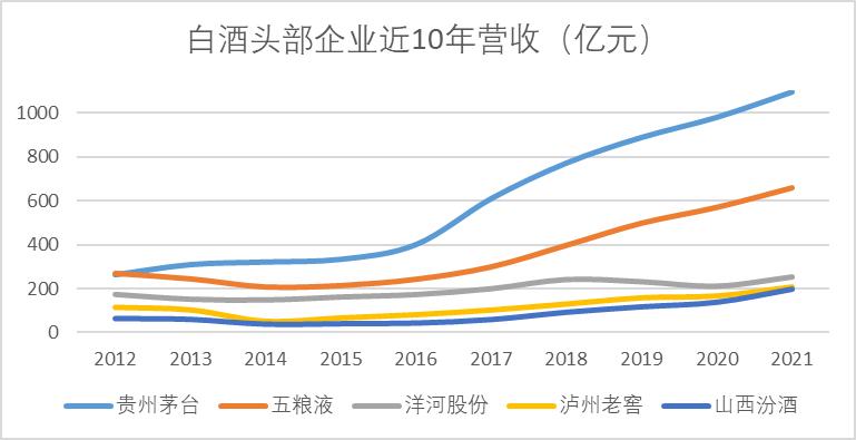 (图:白酒头部企业近10年营收,来源:Choice金融客户端)