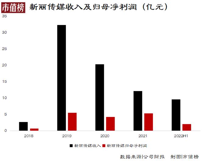 2018年,阅文集团收购新丽传媒,此后新丽传媒业绩一路下滑。