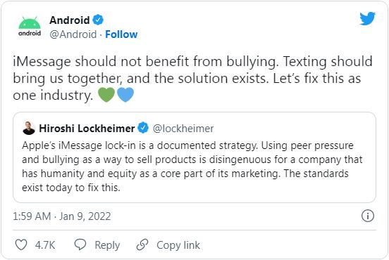 谷歌认为,苹果将短信降级到老式的短彩信(SMS / MMS),主要为纯文本时代设计。而它打破了人们已经开始依赖的许多现代信息功能,长期以来都有许多用户抱怨其带来糟糕的压缩视频画质、缺少已读回执,以及其他一些令人头痛的问题。