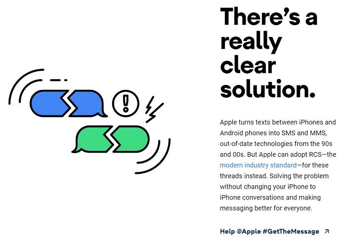 据外媒报道,谷歌 Android 部门周二启动了一项新的宣传活动,专门上线了“Get The Message”网站,鼓励苹果采用新一代跨平台消息传递协议 RCS,以便在跨 iOS / Android 设备的消息传递服务上,实现 iMessage 可提供的大部分功能。