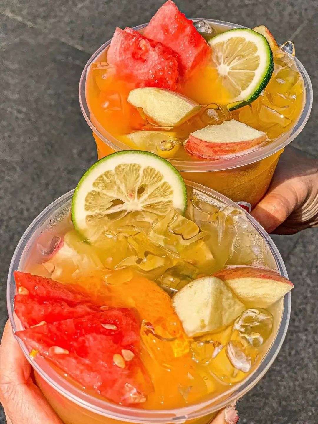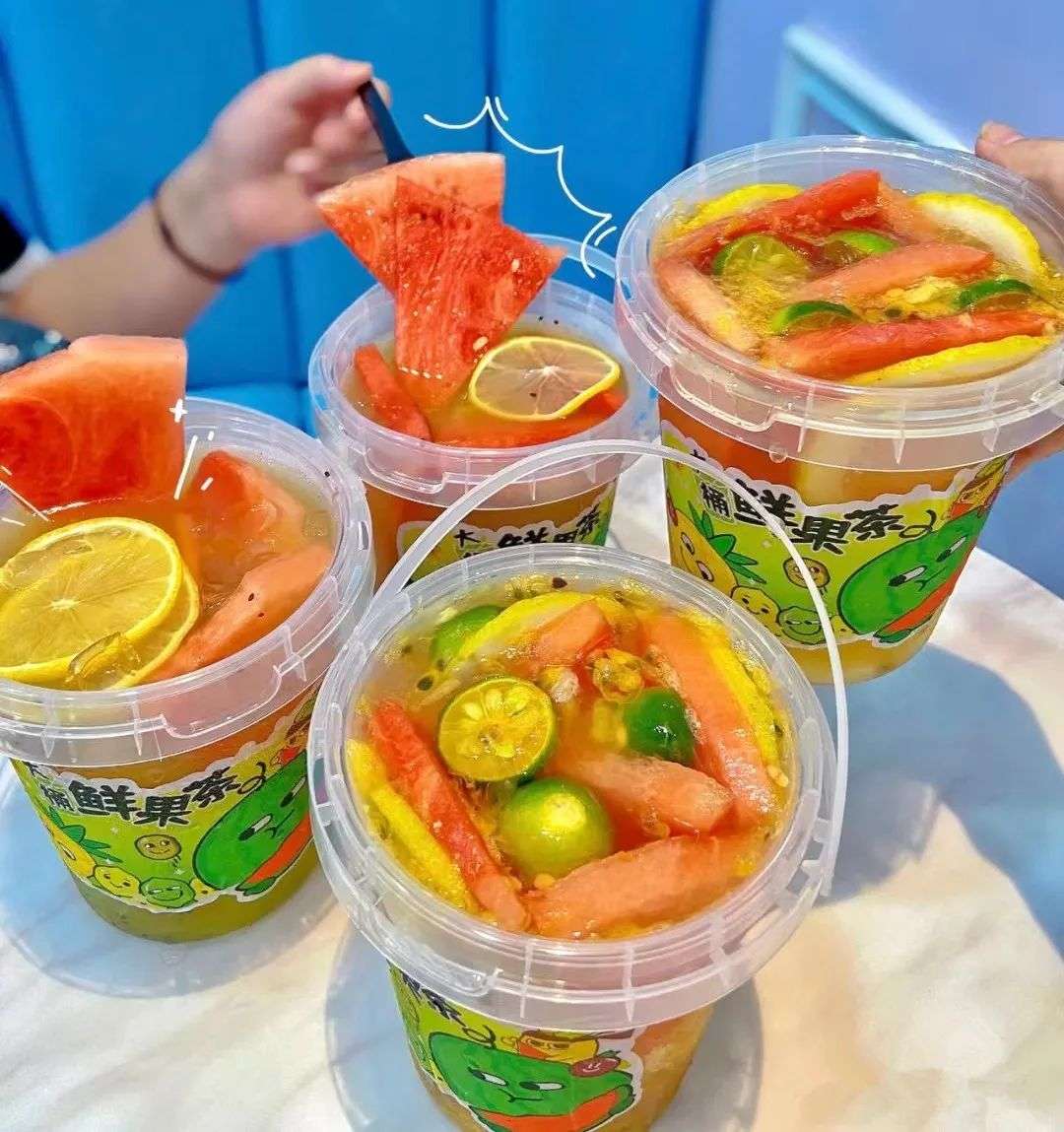 超大桶水果茶的记忆点绕不开“超多酸酸甜甜的水果”、“冰冰凉”、“解渴又消暑”这些话题,正好呼应今年这个又长又热的酷暑。