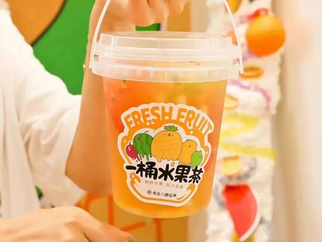 今年,喜茶也推出1L装的大桶多肉桃李,售价也仅为19元。另外,还有茶百道、古茗、沪上阿姨、书亦烧仙草等茶饮品牌也纷纷推出了果茶桶。