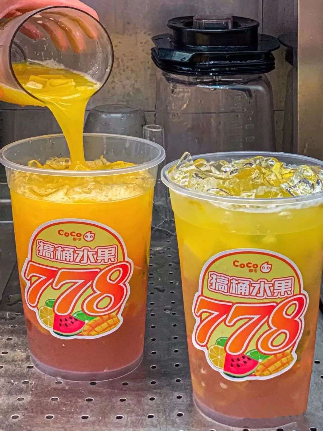 CoCo都可的“搞桶水果778”,号称“水果多到喝不动”,有西瓜、苹果、鲜橙、金桔、百香果等,这些品牌的大桶茶价格还十分亲民。