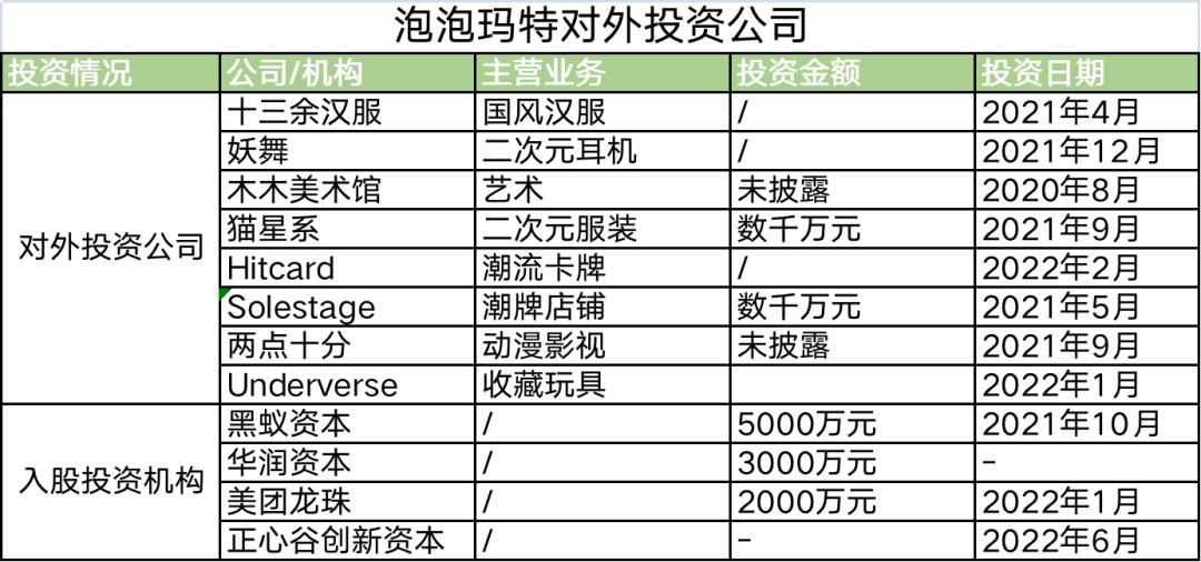 泡泡玛特对外投资情况。来源:公开资料和企查查