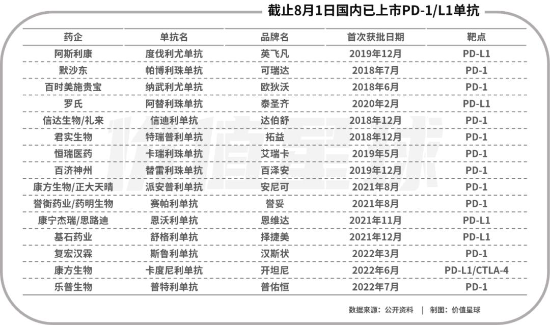 国内已上市的基于PD-1/PD-L1靶向的单抗注射药物,已有15种,其中包括11款国产和4款进口。此外,还有数十个PD-1/L1临床项目正在进行中,这个赛道可谓竞争异常白热化。