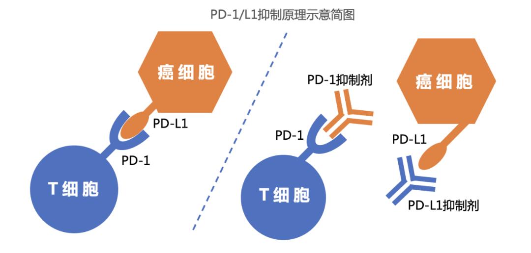 人体内有许多免疫检查点,无法通过检查点的细胞将被识别为异类,被免疫系统消灭。PD-1就是其中一个免疫检查点,而PD-L1就是PD-1的配体,配体成功,则通过免疫检查。肿瘤细胞表面有很多PD-L1,与免疫检查点PD-1结合,就能骗过免疫系统,不受免疫细胞的攻击。