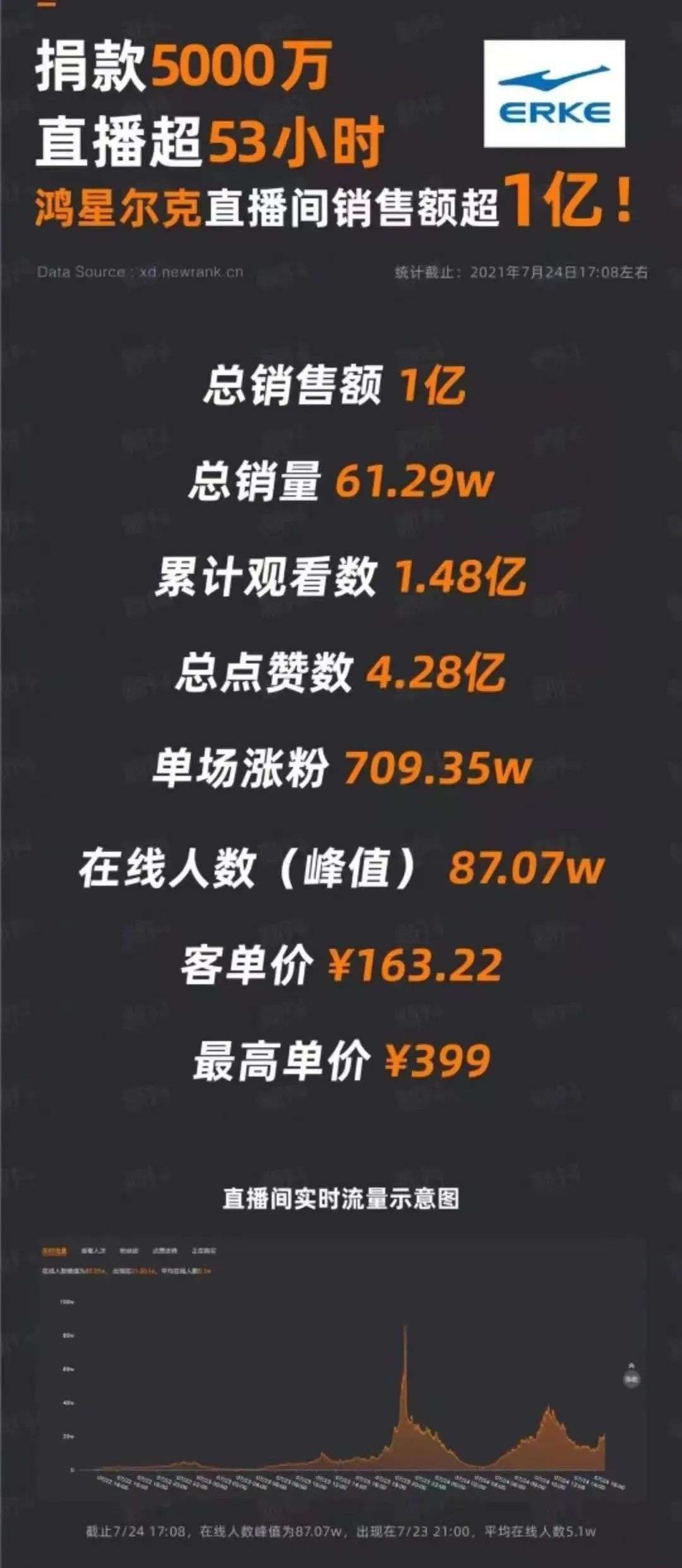 在舆论的推动下,鸿星尔克站上流量巅峰,销量因此大涨。