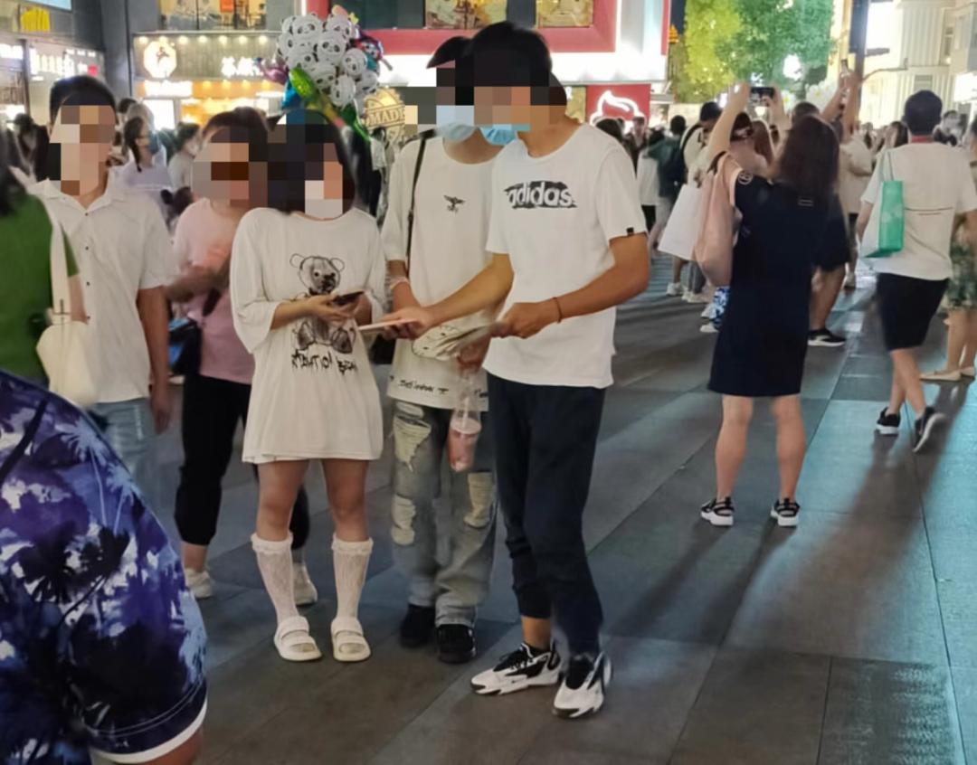 图注:武汉江汉路步行街App地推人员向路人和游客推广。