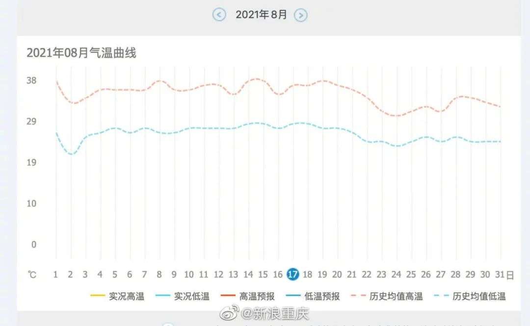 只是往年热归热,但却很少如此离谱。拿2021年举例,整个夏天重庆的最高温度只有38度,对比如今的确显得有些“平平无奇”。