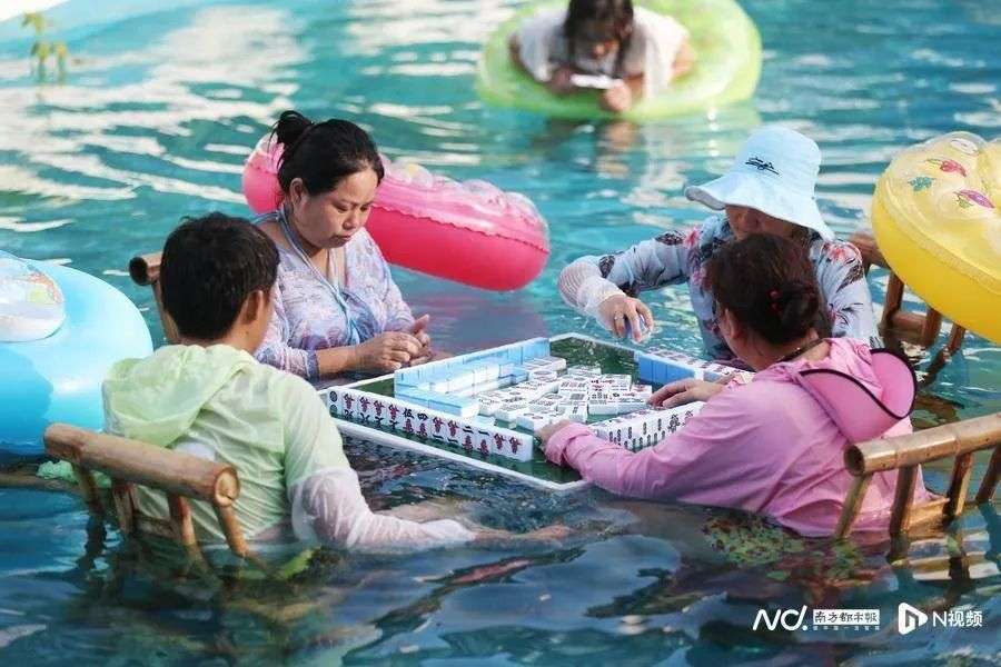 高温下的重庆,不仅地铁站挤满了蹭空调的人,还有人到水里打起了麻将。