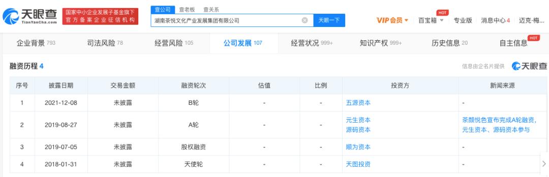 虽然固守长沙,但出色的市场表现,也使得茶颜悦色同样备受资本青睐。根据天眼查显示,目前茶颜悦色共完成四轮融资,投资方有天图投资、顺为资本、源码资本、元生资本、五源资本等。其中顺为资本的资金管理人正是小米的CEO雷军。2021年10月,茶颜悦色公司发生股权变更,新增股东为南京五源启兴创业投资中心,其背后股东有北京快手科技有限公司、深圳市腾讯产业投资基金有限公司、天津金星创业投资有限公司(小米科技公司全资持股)等。