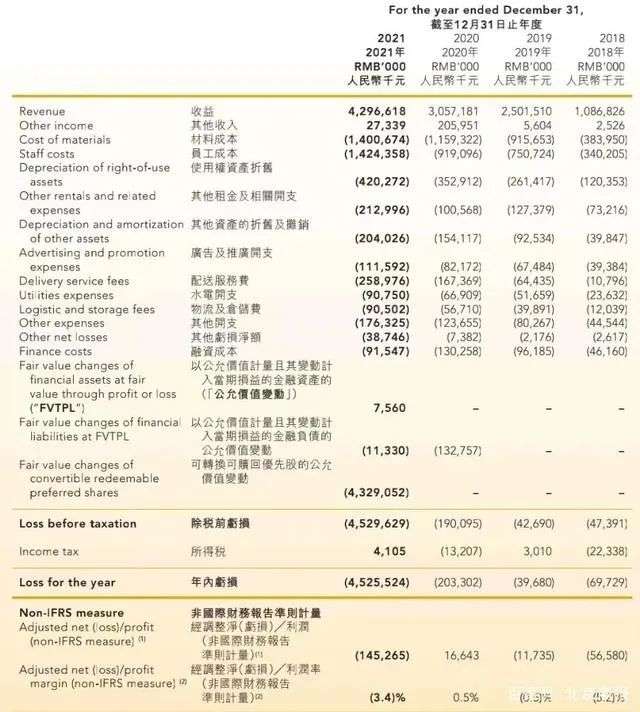 单杯价格比喜茶还高的奈雪的茶的经营情况,同样也是问题重重。作为一家上市公司其财报显示,截至2021年12月31日,2021年奈雪的茶总营收42.96亿元,同比去年上涨40.5%;2021年奈雪的茶门店经营利润达5.92亿元人民币,较2020年提升约68.4%;经调整净亏损金额达1.45亿元,而2020年同期这个数字为盈利1660万元,由盈转亏。