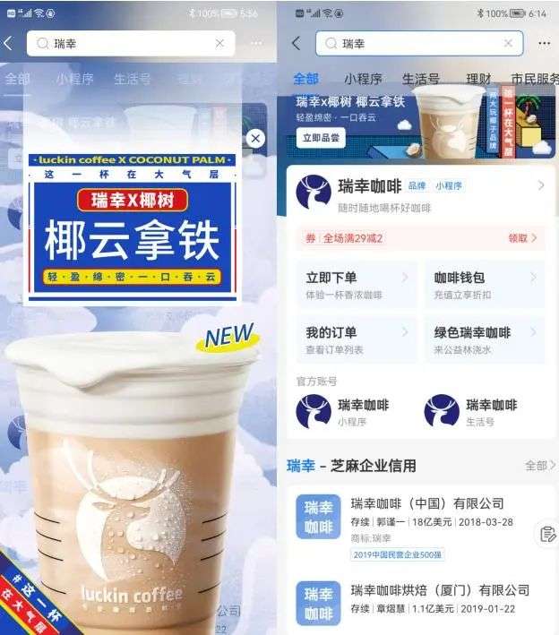 通过搜索展示的小程序品牌页,变得越来越“卷”——微信把视频号、公众号、品牌活动全部关联进小程序;支付宝则把“上支付宝搜xxx获得权益”的营销手法玩到了极致:上半年,瑞幸×椰树的联名饮品、喜茶最新推出的“9元请全体学子喝喜茶”的学子卡,都在支付宝承接。