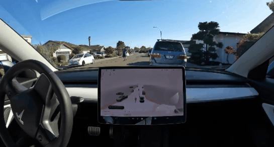 更多的视频证明,特斯拉看到路人横穿马路会立刻减速,看到小孩也会立刻刹车。