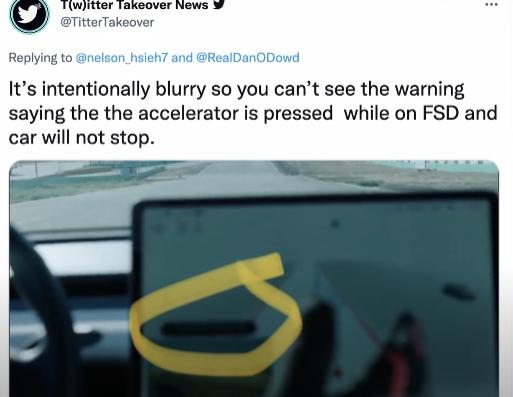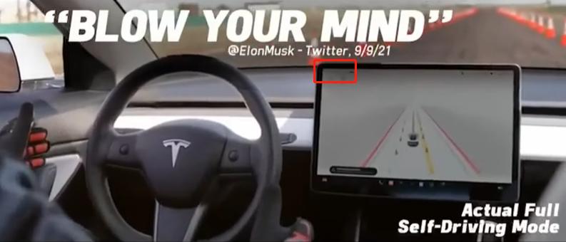 有人发现,这次测试里,司机表面上是有按下自动驾驶开关的动作。但放大细看你会发现,特斯拉中控屏的自动驾驶功能模块是灰色的。