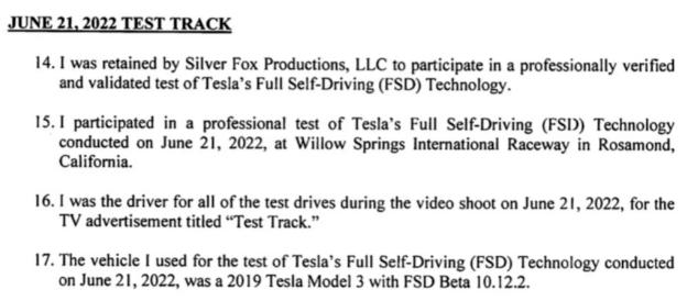 他们贴出一份测试司机 Art Haynie 的宣誓书,司机宣誓 FSD 确实在测试中被激活了。