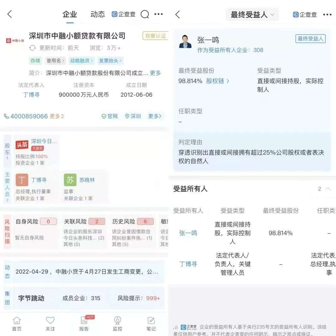 有蚂蚁覆辙在前,仍未上市的字节在此方面也该小心谨慎。天眼查信息显示,目前中融小贷由深圳今日头条科技有限公司全资持股,两者均位列抖音集团37家核心企业之中。
