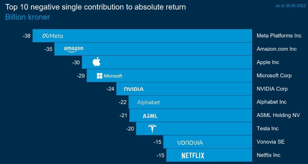 对其投资组合拖累最严重的十大个股分别是Facebook母公司Meta、亚马逊、苹果、微软、英伟达、谷歌母公司Alphabet、光刻机巨头ASML、特斯拉、德国房地产公司Vonovia 和奈飞。