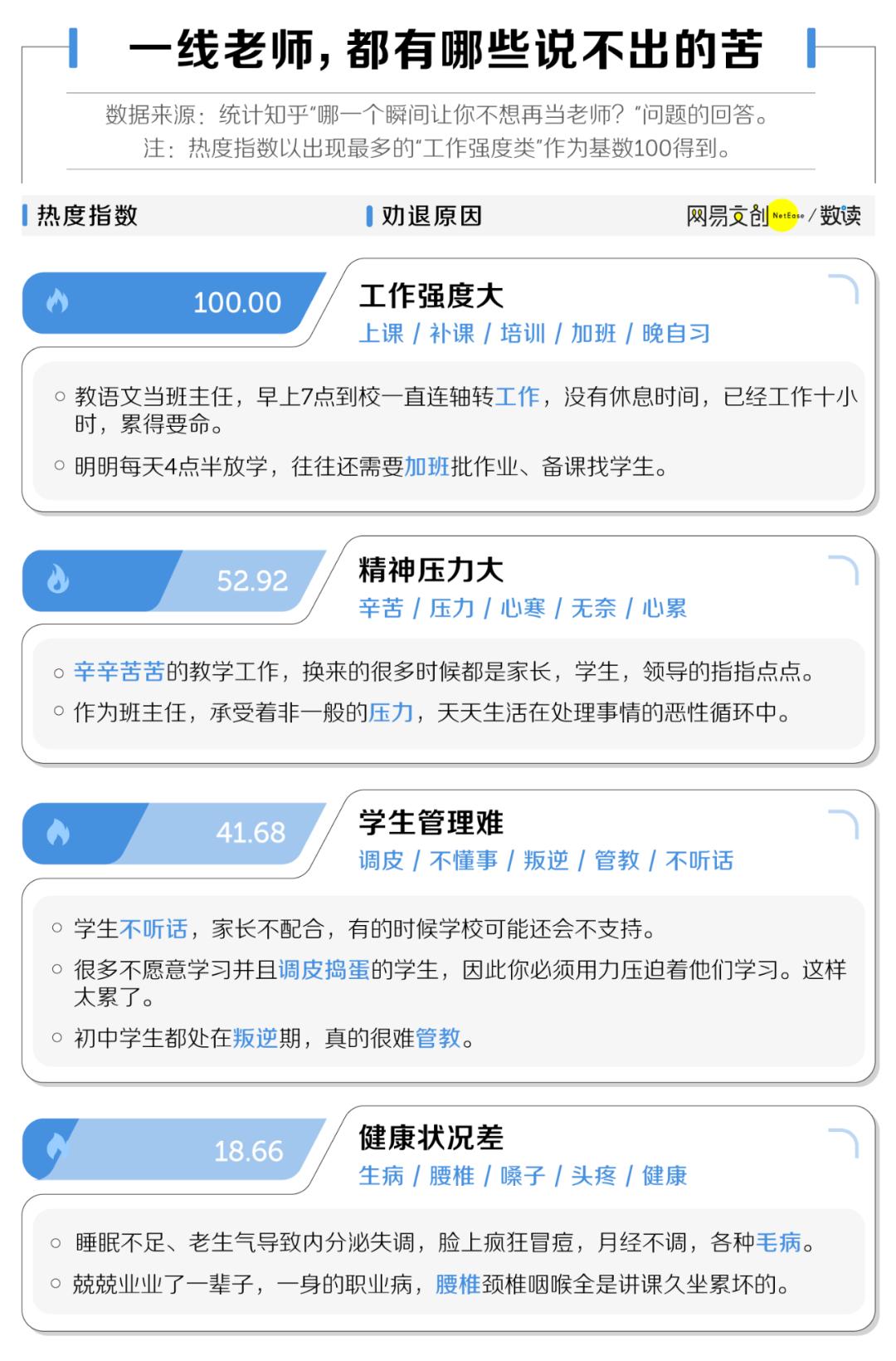 除了收入低,当老师的压力也不比其他行业小。一线老师吐槽最多的,就是工作强度大。