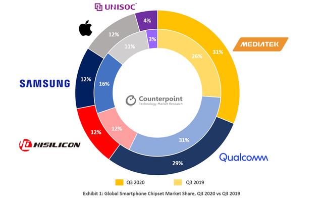 有趣的是,如今这副风光无限的样子,和三年前的联发科形成了鲜明的对比。比较古早的数码爱好者应该都记得,联发科曾经是一家主要为低端和中端智能手机提供低成本芯片的厂商,一度因为激进的“冲高”战略而濒临破产,如今却已成为移动处理器市场上的第一大供应商。