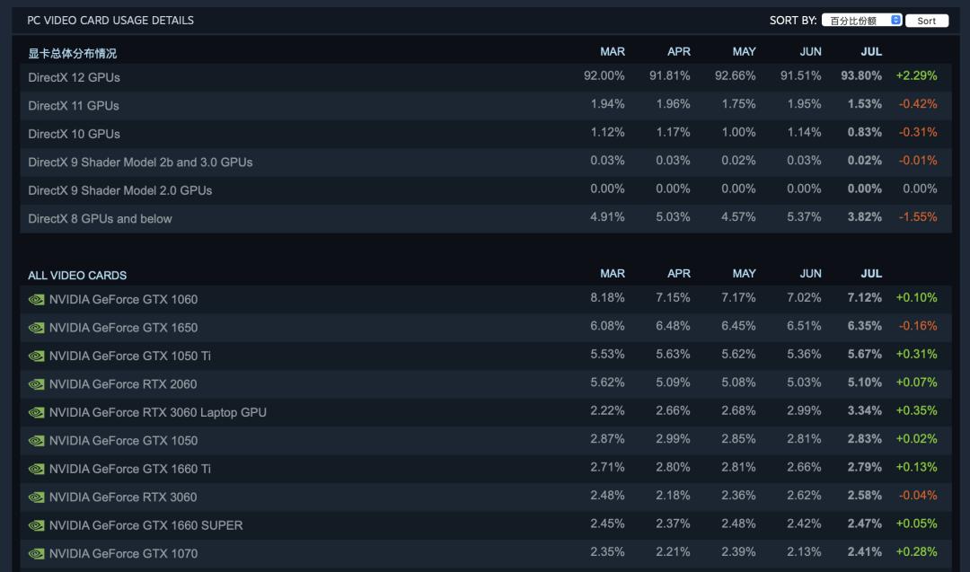 要知道受惠于DX12支持的并不只有Arc系列显卡,根据Steam的统计,有超过93%的玩家正在使用支持DX12的显卡,DX12支持对这93.8%的Steam用户来说都同样重要。