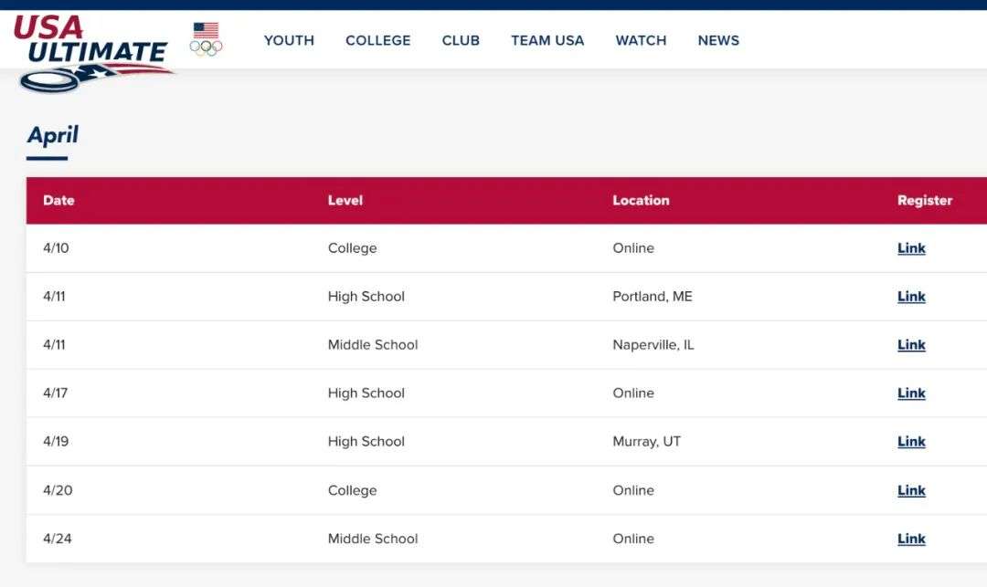 反观美国,飞盘教练已下沉至初高中校园内。USA Ultimate的飞盘教练认证中,教练分为初中、高中、大学不同级别。