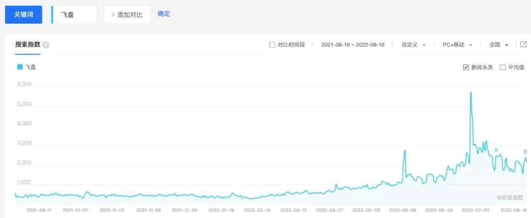 ■ 近一年内“飞盘”相关搜索 图源:百度指数