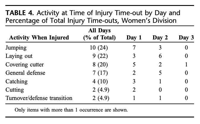 1. Hess, M. C., Swedler, D. I., Collins, C. S., Ponce, B. A., & Brabston, E. W. (2020). Descriptive epidemiology of injuries in professional ultimate Frisbee athletes. Journal of athletic training, 55(2), 195-204.