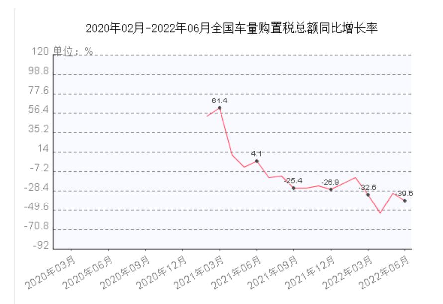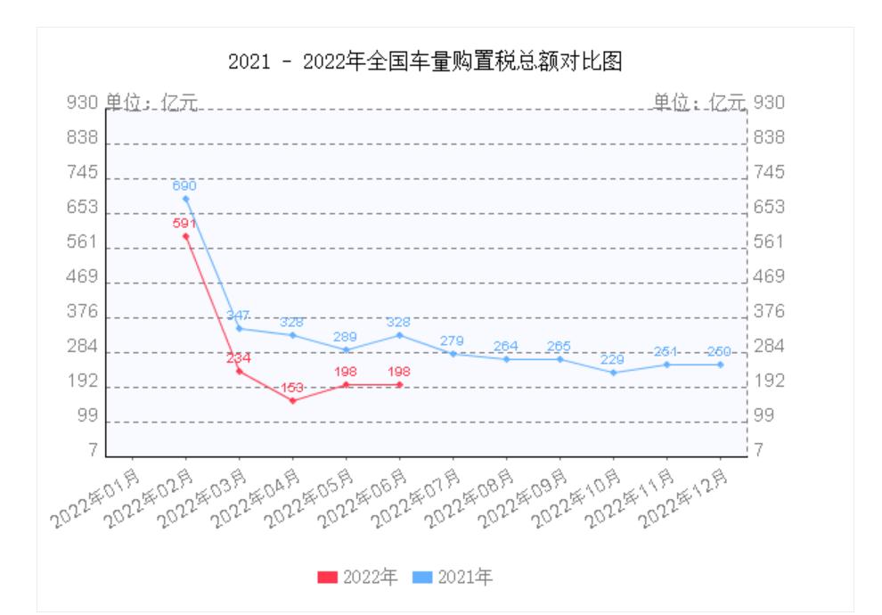 根据国家统计局数据,2022年6月,全国车辆购置税总额为198亿元;同比增长率为-39.63%。