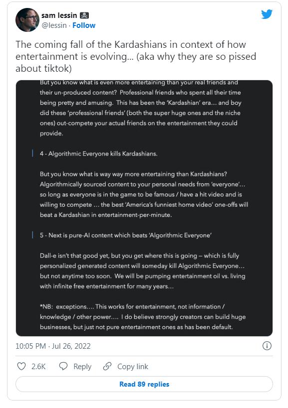 说到娱乐会如何演变,卡戴珊家族即将垮台……(这也是她们对 Tiktok 如此恼火的原因)