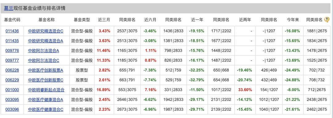 在4年多时间内,葛兰执掌的“中欧明睿新起点混合”实现累计收益率120.06%。年初至今亏损最多的“中欧医疗创新股票A”、“中欧医疗创新股票C”,成立时间已超过3年半,迄今已分别实现76.67%、71.95%的累计收益率。