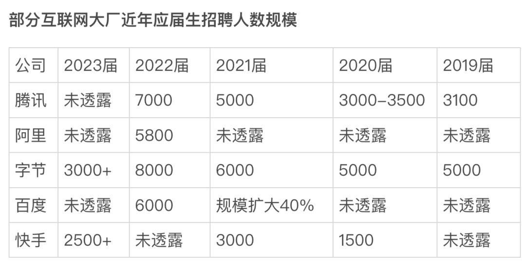 各家秋招人数均有不同幅度的下降,BAT以及TMD几家头部大厂秋招人数,加起来可能不超过3万。