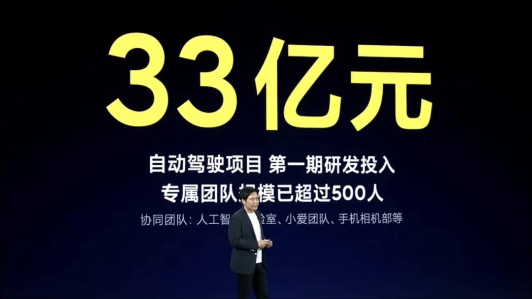 小米汽车的自动驾驶,首期研发投入33亿元,有超过500人的研发团队;现在已经进入测试阶段,将会有140台测试车在全国范围内进行测试;目标是在2024年进入自动驾驶的第一阵营。