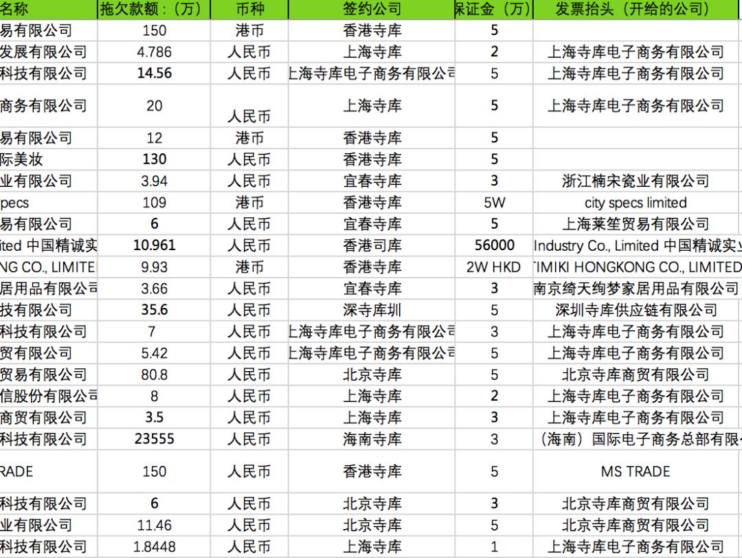 从2021年开始,供应商们就开始集体维权,寺库被拖欠的货款少则几十万,多则上千万。