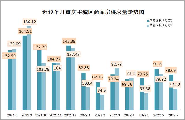 克而瑞数据显示,7月,重庆主城区商品房成交7985套,成交面积78.69万方,环比减少14.3%,同比减少59.2%。